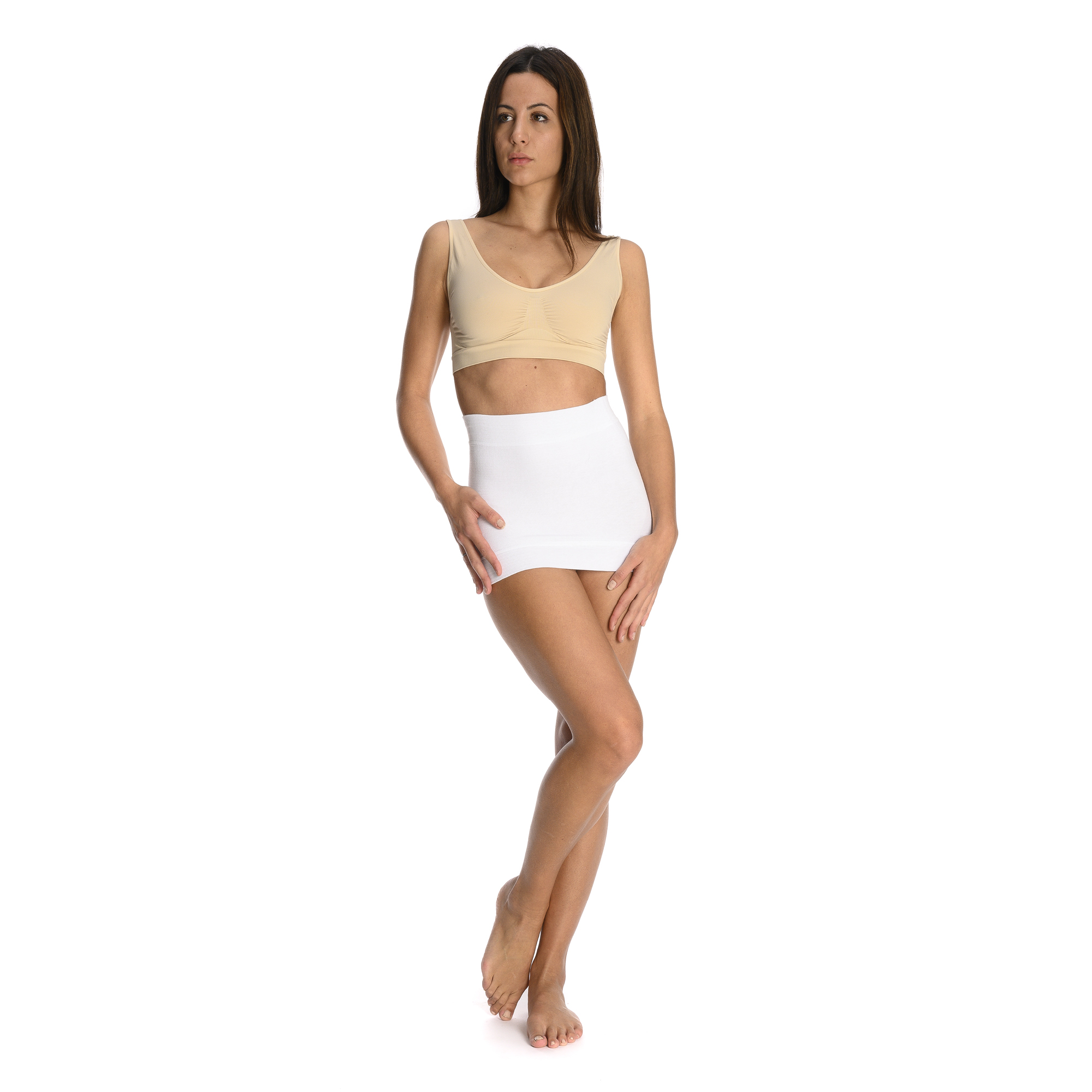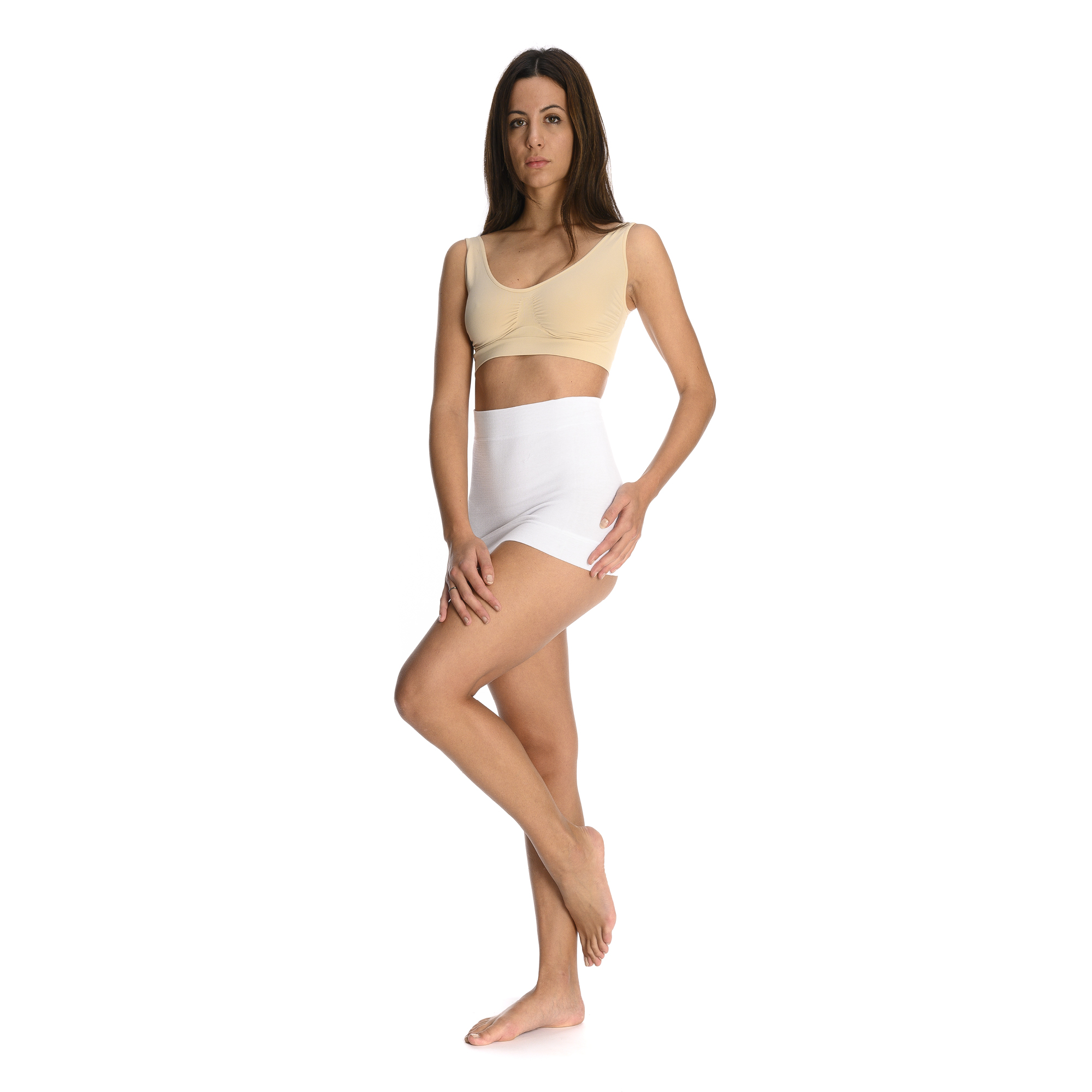 Cintura tubolare, in fresco e igienico cotone elasticizzato, per una perfetta aderenza e vestibilità.