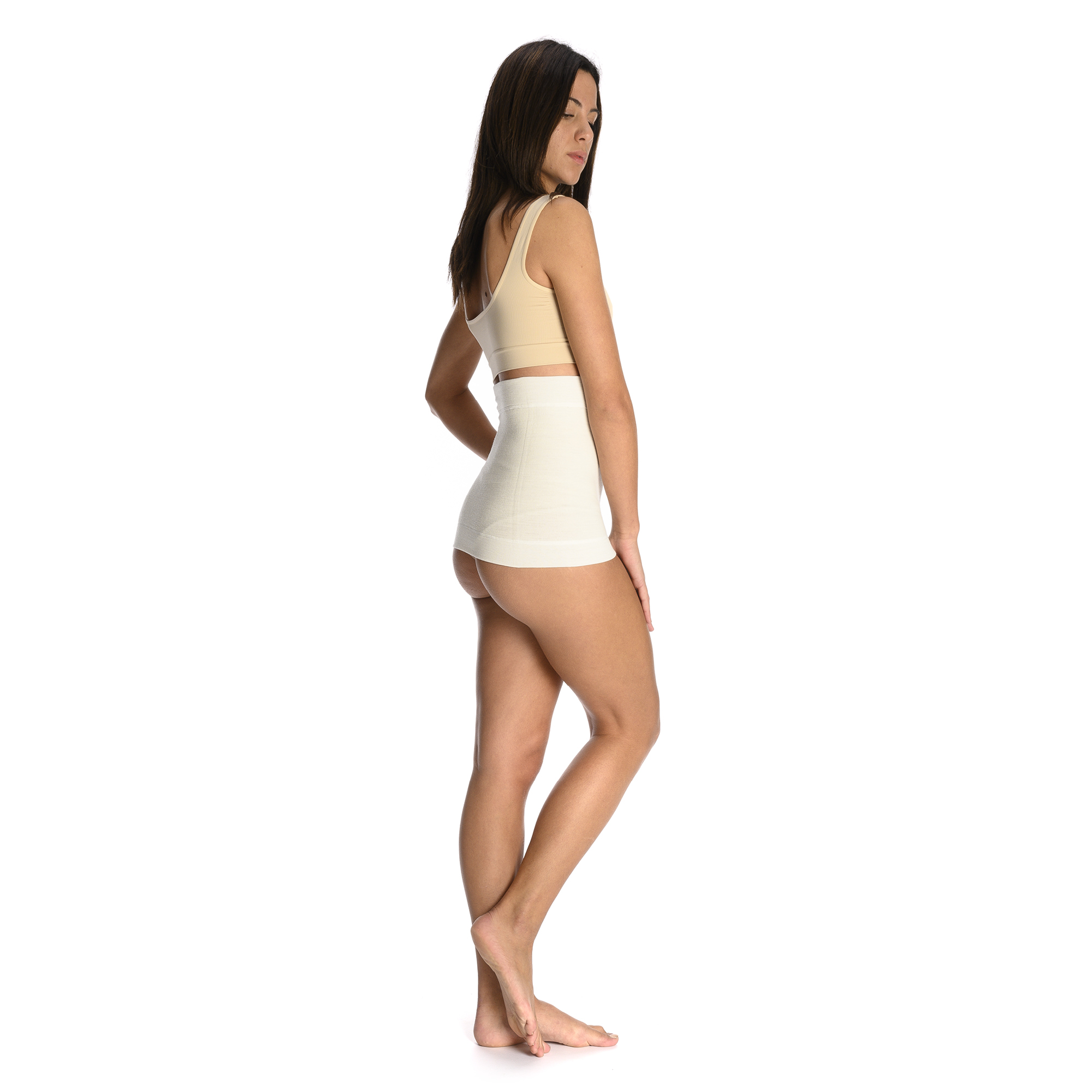 Cintura elastica tubolare anallergica, con la caratteristica esclusiva di presentare la lana all’esterno e il cotone all’interno che garantiscono un igienico e salutare effetto climatizzante.