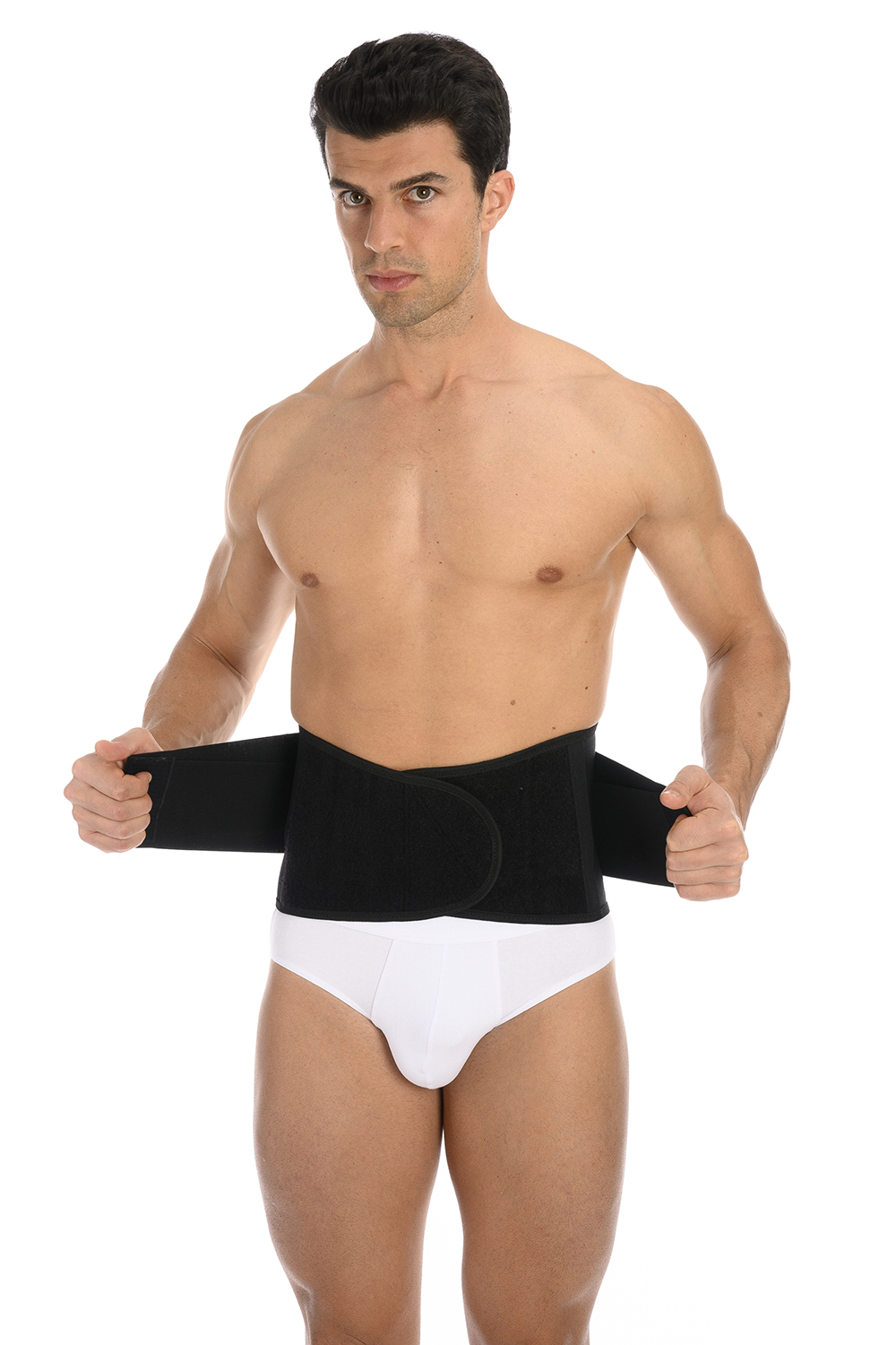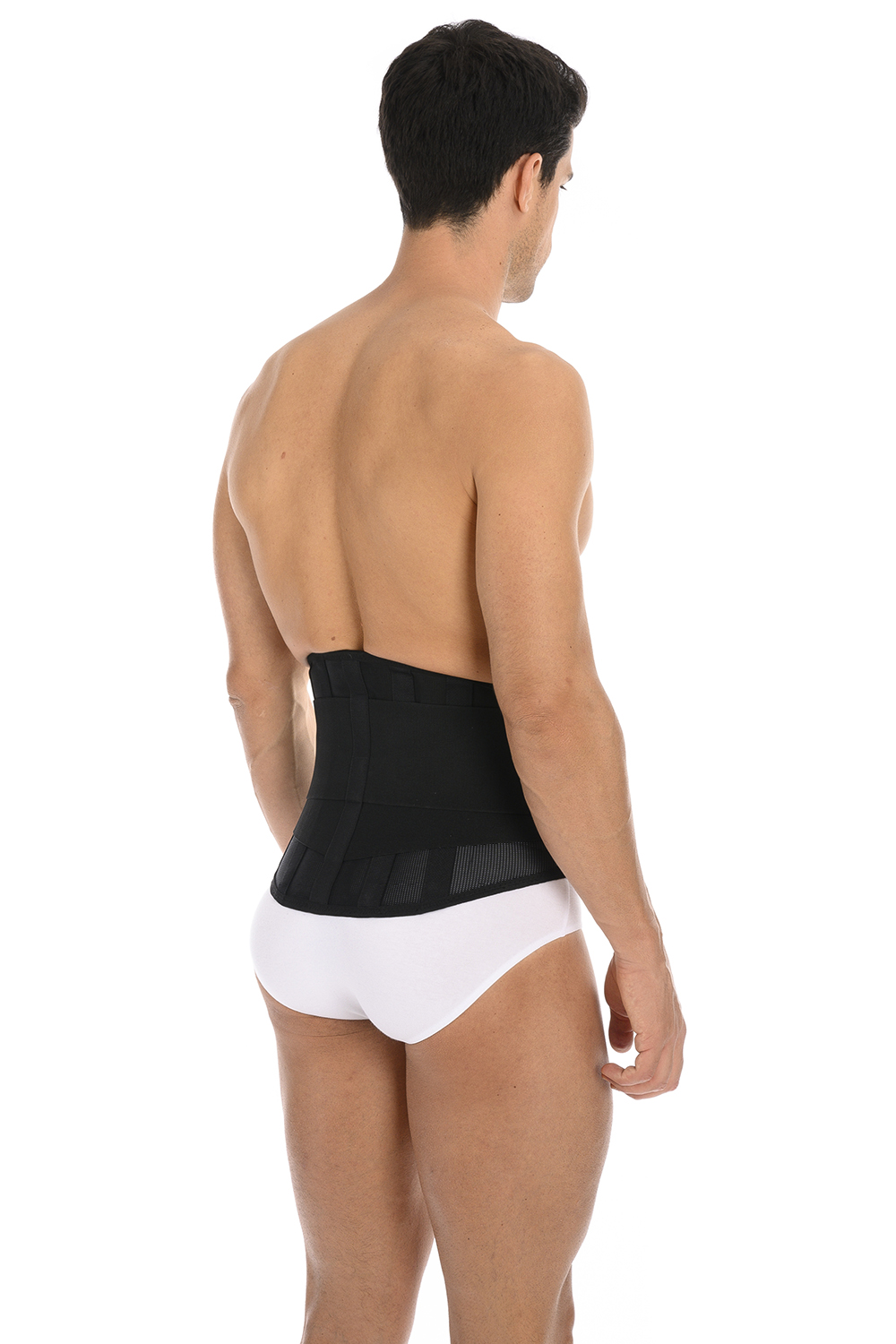 Corsetto nero Rekordsan ad ampia regolabilità, rinforzato, anatomico e sagomato, è dotato di stecche paravertebrali, chiusura apribile con adesivo e doppi tiranti esterni che ne accrescono l’azione contenitiva assicurando un forte e benefico sostegno lombosacrale contribuendo ad alleggerire il peso sulla colonna vertebrale.