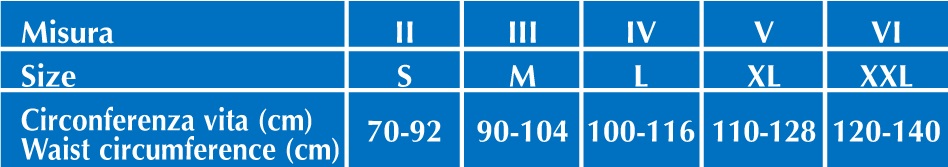 Dotato di 4 stecche paravertebrali modellabili per una perfetta aderenza del corsetto, 2 stecche anteriori antiarrotolamento e speciale pannello addominale ad ampia regolabilità.