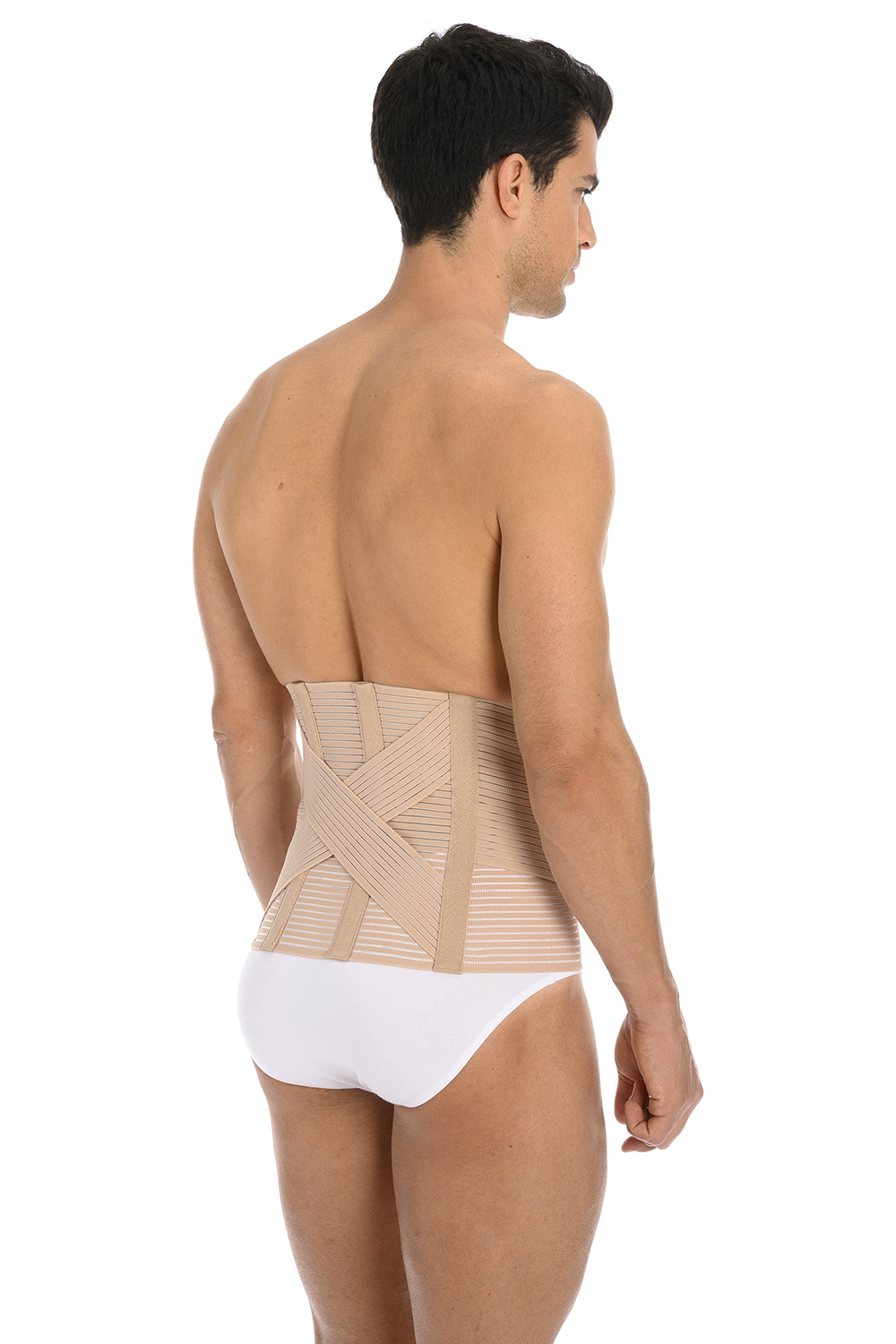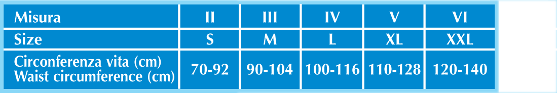 Corsetto in esclusivo igienico tessuto traspirante elasticizzato, rinforzato con incrocio dorsale sostenitivo e doppia fascia addominale che modella il corpo adattandosi perfettamente sia all’uomo che alla donna.