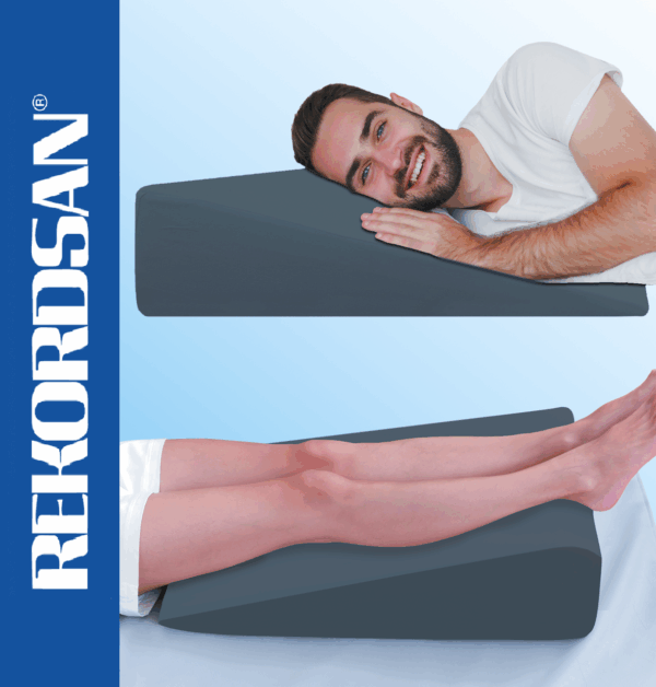 Il cuscino maxi cuneo Rekordsan, in poliuretano espanso ad alta densità indeformabile, è indicato a chi soffre di leggeri gonfiori alle gambe o alle caviglie in quanto permette di tenerle alzate in modo da migliorare la circolazione. Può essere utilizzato anche durante il riposo notturno infilando il cuneo sotto al materasso in modo da rialzarlo stabilmente. Per chi durante la giornata volesse rilassarsi ed ottenere un equilibrato supporto e sollievo della colonna vertebrale, potrà utilizzarlo appoggiandovi la testa e il busto. Particolari benefici potrà offrire alle persone che soffrono di reflusso gastroesofageo, le quali durante il riposo potranno mantenere la testa e il busto leggermente rialzati.