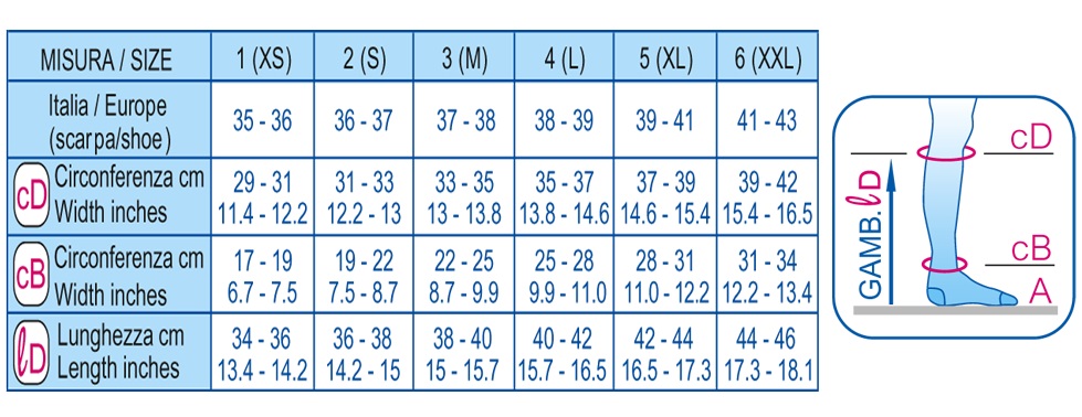 Gambaletto flebologico 240 denari punta chiusa, maglia a rete (mm Hg 23-32) con bordo equilibratamente elasticizzato che sostiene senza stringere.